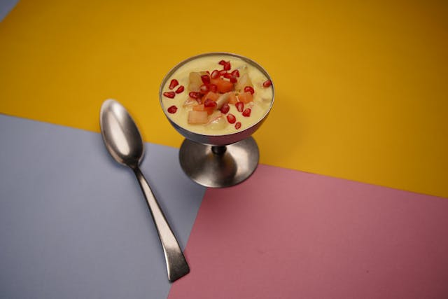 Ice Cream with Fruits on a Colorful Background. Photo by Jack Baghel: https://www.pexels.com/photo/ice-cream-with-fruits-on-a-colorful-background-20446420/